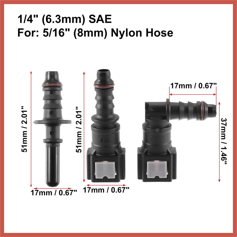 Size: 1/4" (6.3mm) SAE for 5/16" (8mm) Nylon Hose