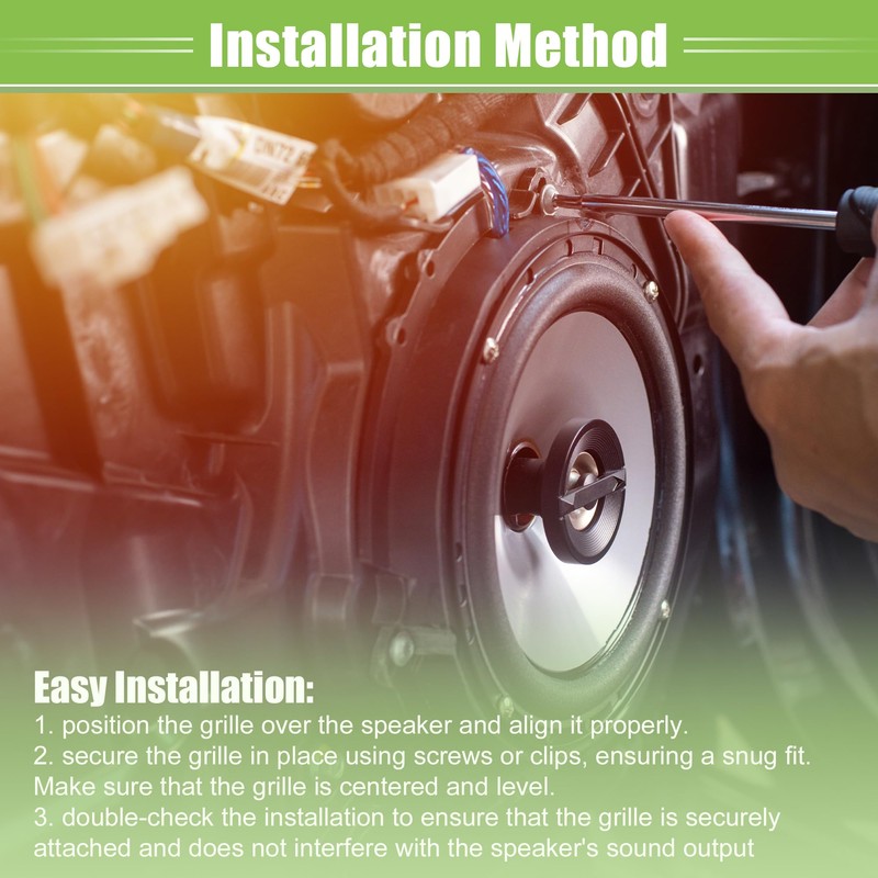 - Easy Installation: 1. Position the grille over the speaker and align it properly. 2. Secure the grille in place using screws or clips, ensuring a snug fit. Make sure that the grille is centered and level. 3. Double-check the installation to ensure that the grille is securely attached and does not interfere with the speaker's sound output.