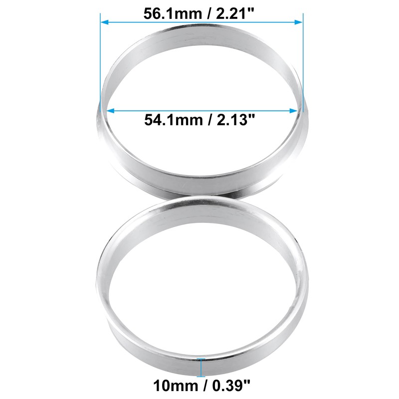 - Inner Diameter: (Vehicle Hub Size) 54.1mm / 2.13", Outer Diameter: (Wheel Bore Size) 56.1mm / 2.21", Thickness: 10mm / 0.39", Size: 56.1x10mm / 2.21"x0.39"(D*T)