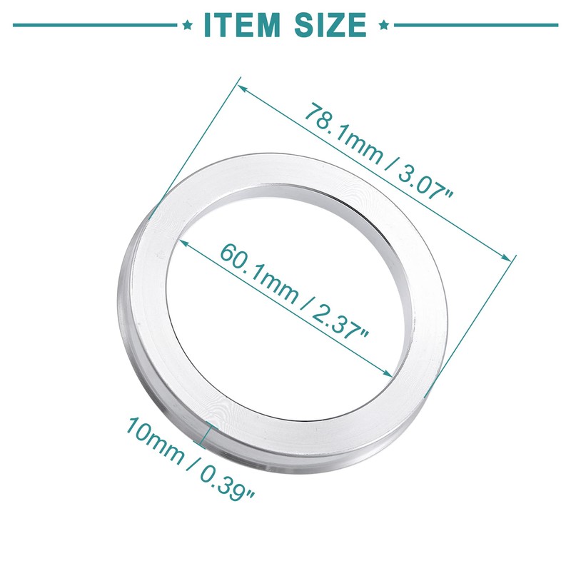 - Direct Fit to prolong the Hubcentric Rings life time Size: Fit for any vehicle with a 66.6mm hub that needs to adapt a wheel with 78.1mm center bore (OD=78.1mm, ID=66.6mm)