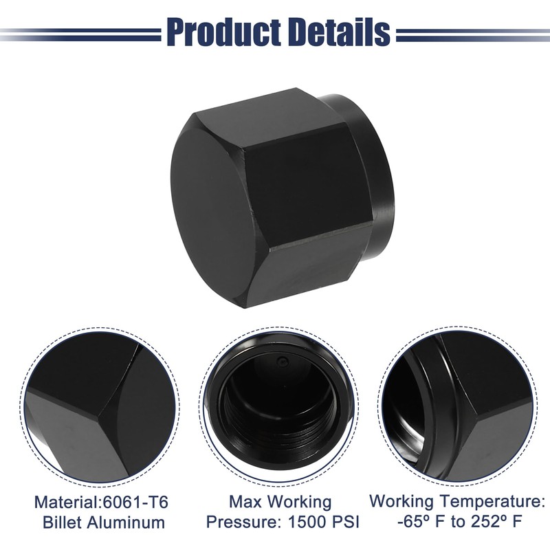 ACROPIX AN6 Universal Female Flare Cap Port Plug Block Off Fitting Nut Adapter with O-ring Black - Pack of 4