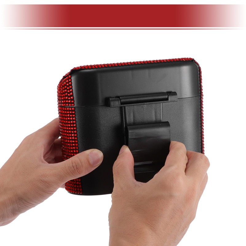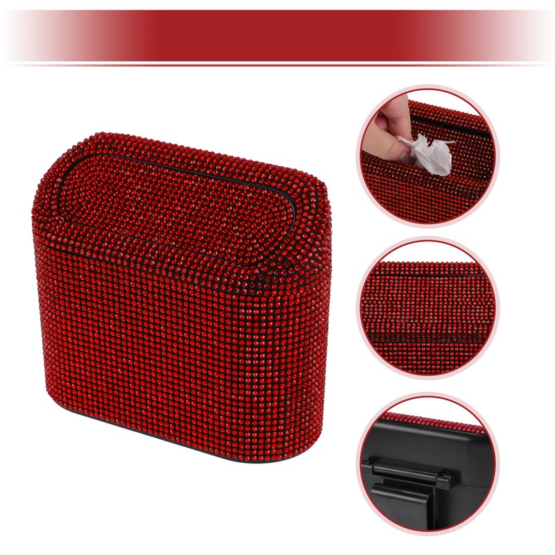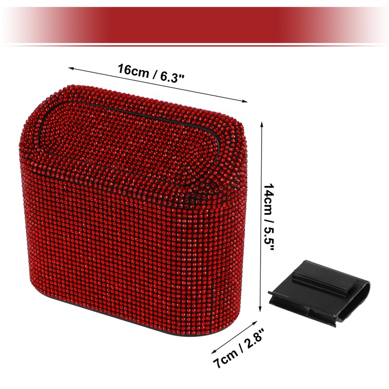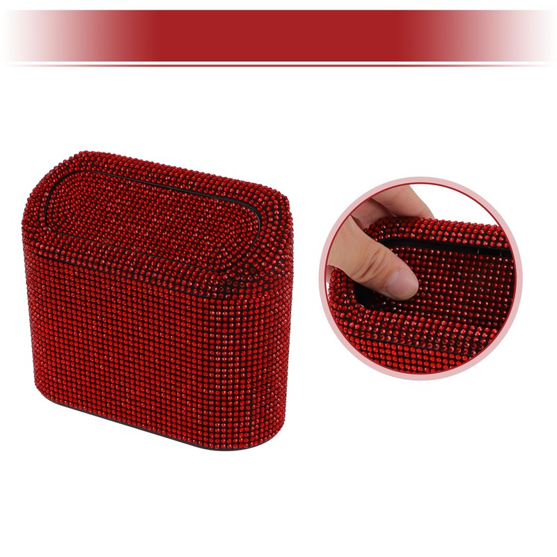 ACROPIX Car Trash Can Trash Bin Rhinestones Hanging 6.3" Length 2.8" Width 5.5" Height Red Black Rhinestone ABS