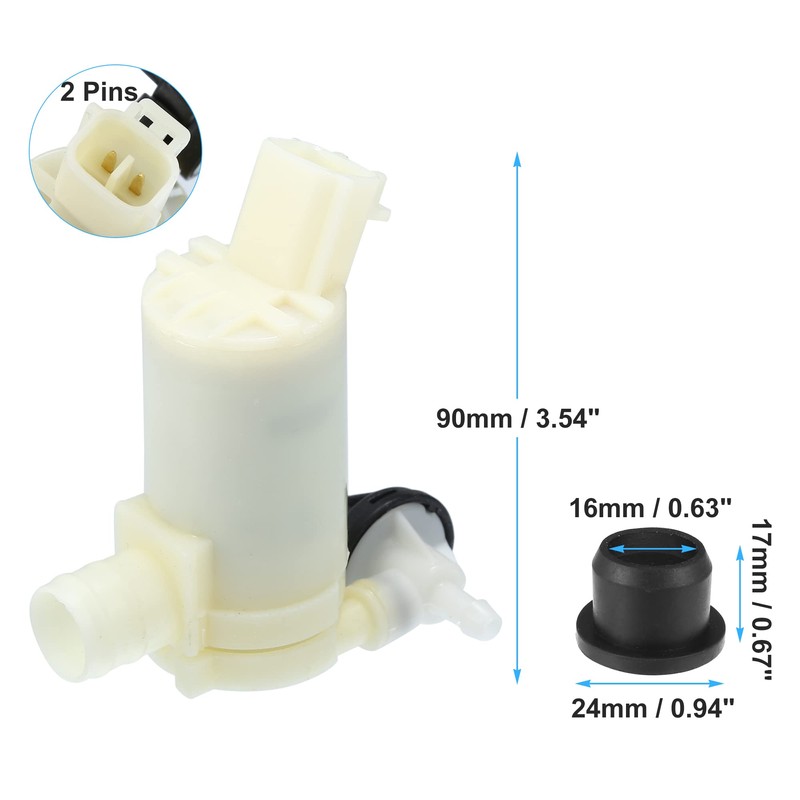 - Package Includes: 1 pcs Windshield Washer Pump, 1 pcs Rubber Grommet.