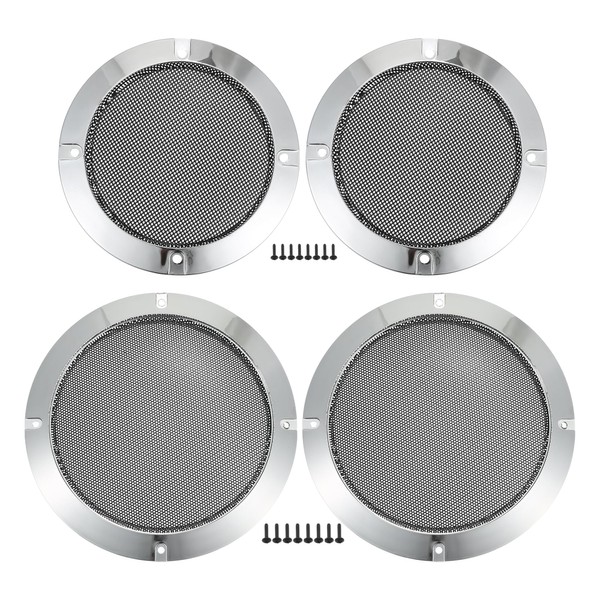 ACROPIX Universal 4" 6.5" Speaker Grills Cover Mesh Round 4 inch 6.5 inch Audio Speaker Subwoofer Guard Protector Case with Mounting Screws Iron Plated Silver Tone - Pack of 4