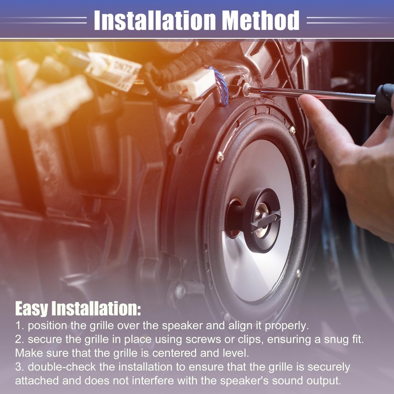 - Easy Installation: 1. Position the grille over the speaker and align it properly. 2. secure the grille in place using screws, ensuring a snug fit. Make sure that the grille is centered and level.3. Double-check the installation to ensure that the grille is securely attached and does not interfere with the speaker's sound output.
