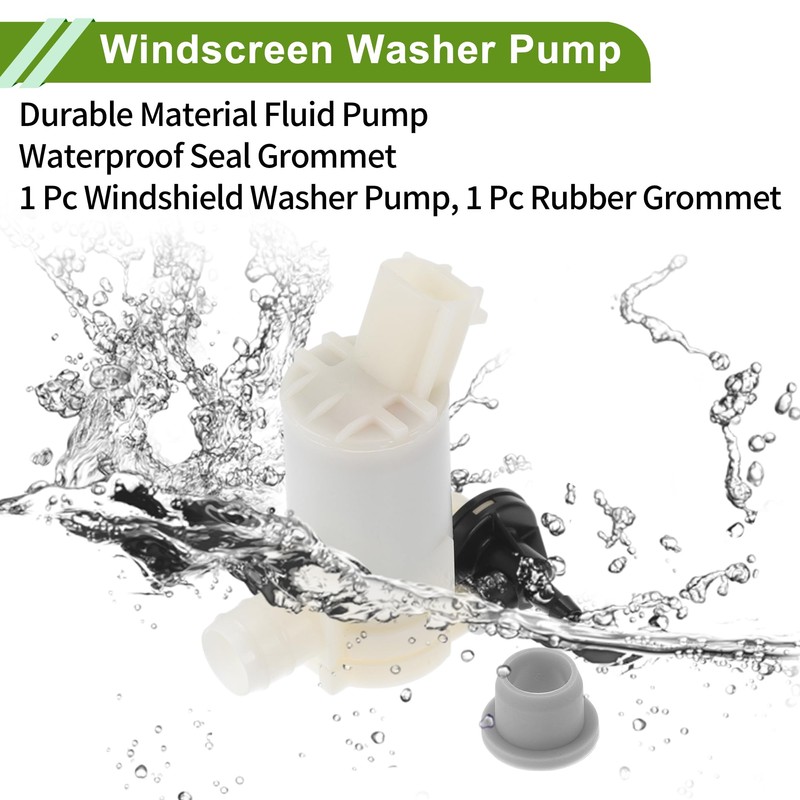 - 1 Set Windshield Washer Pump with Grommet. No Leaks: This windscreen washer pump is equipped with a rubber grommet, have good sealing, which can effectively prevent leaks of cleaning fluid.