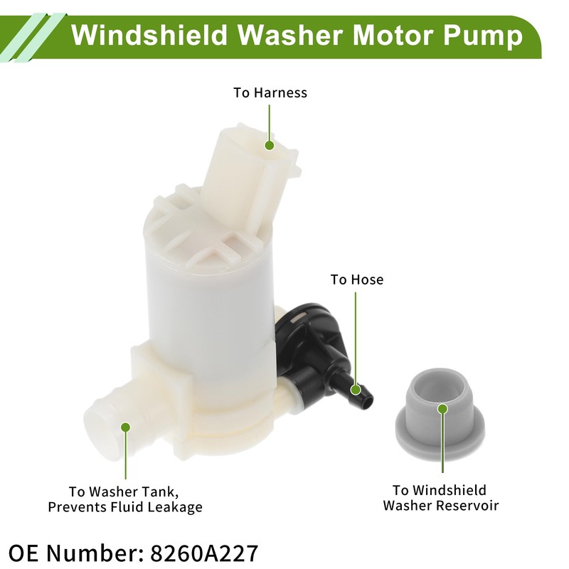 - OE Number:8260A227.Built for the efficiency to spray clean washer fluid up from the reservoir out onto your windshield.