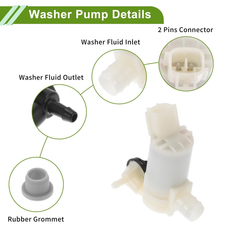 When Need To Replace Washer Pump: If your windshield washers don't spray or uneven spraying, washer fluid reservoir leaks, the weakening of the water pressure and so on, you may need to replace the windshield washer fluid pump and grommet