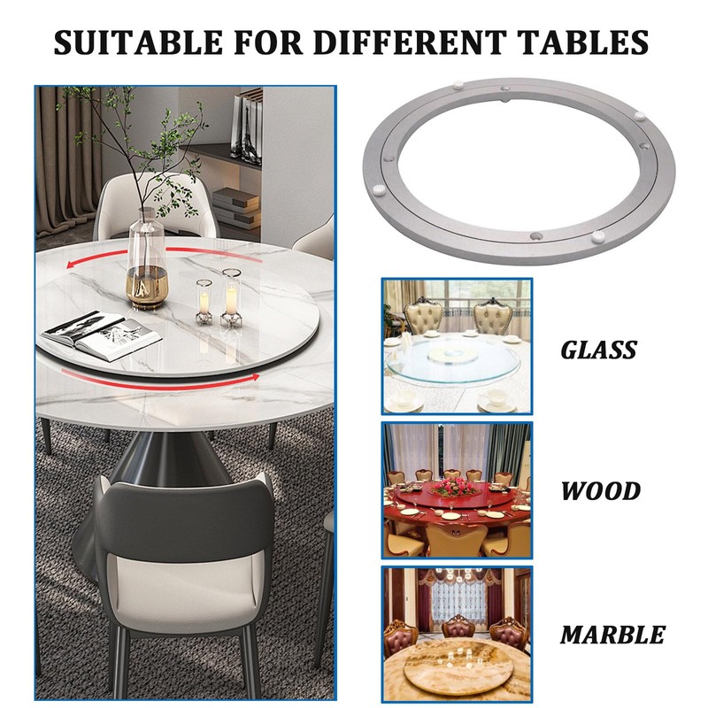 - You Decide: 14 inch lazy susan turntable can be perfectly placed on marble, glass, wood and other table tops without damaging the table. You can decide the material of the top according to your preference, such as wood, marble, etc. to match your home style