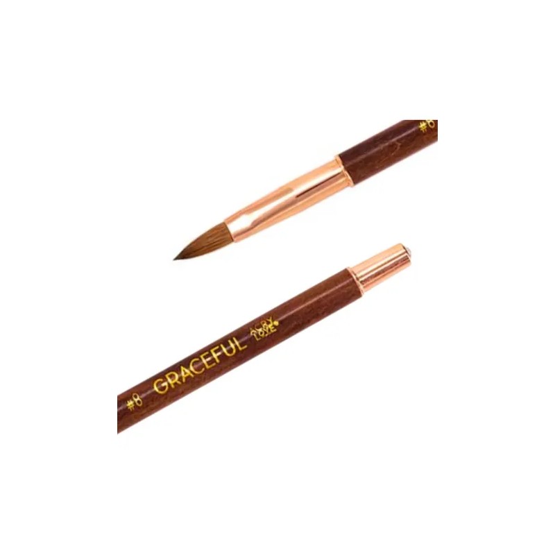 Pincel Graceful de Acry Love con cerdas 100% Kolinsky diseñado para la aplicación de uñas acrílicas. El número 8 indica el grosor de la brocha y el mango del pincel, siendo más grueso cuanto mayor es el número.