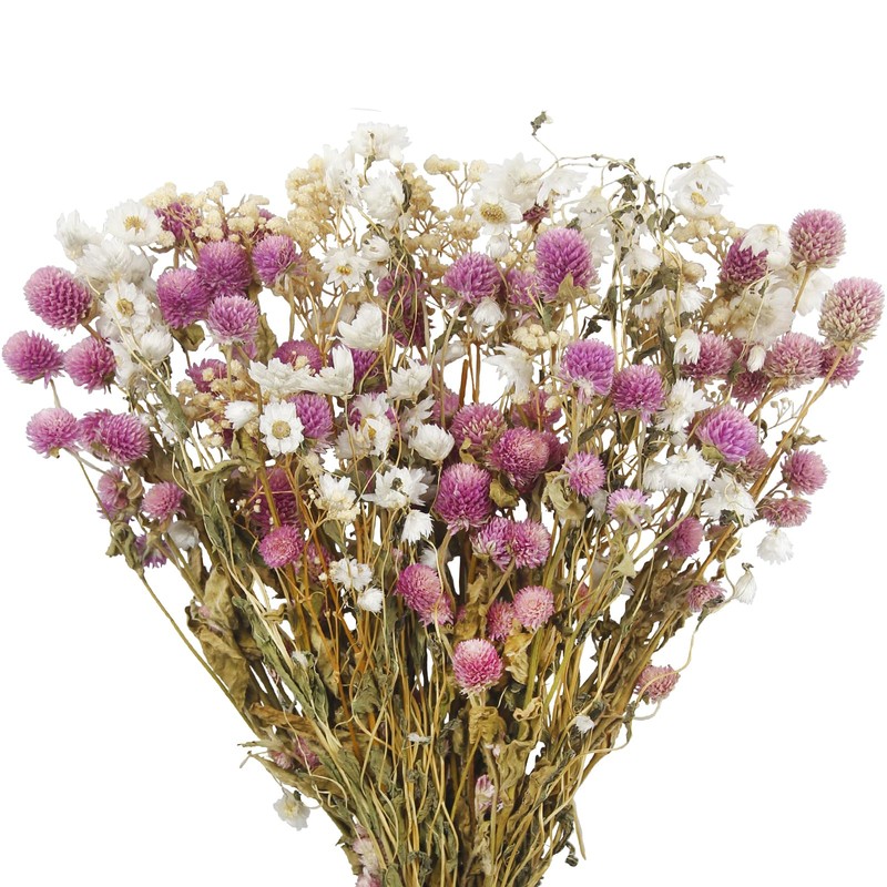 - Dried flower bouquet is made from natural real flowers, maintaining their original appearance and timeless natural beauty. Exquisite bouquets contain various elements, such as dried daisies, pink globe amaranth, dried flower gypsophila and more. Natural floral combinations can better showcase the vitality of nature.