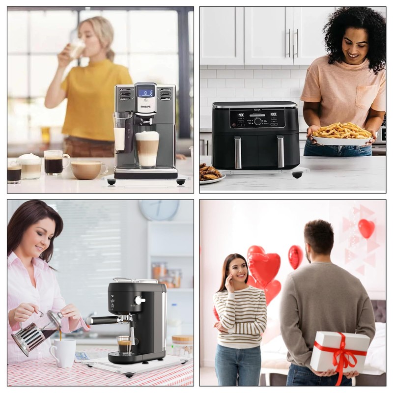 - Versatile Size Selections: Acrylic Appliance Slider Choose from two sizes—14 x 9.8 inches for larger coffee machines and stand mixers, and 14 x 13 inches for 3-quart instant pots and standard dual coffee makers. They are also perfect for air fryers, blenders, rice cookers, and more