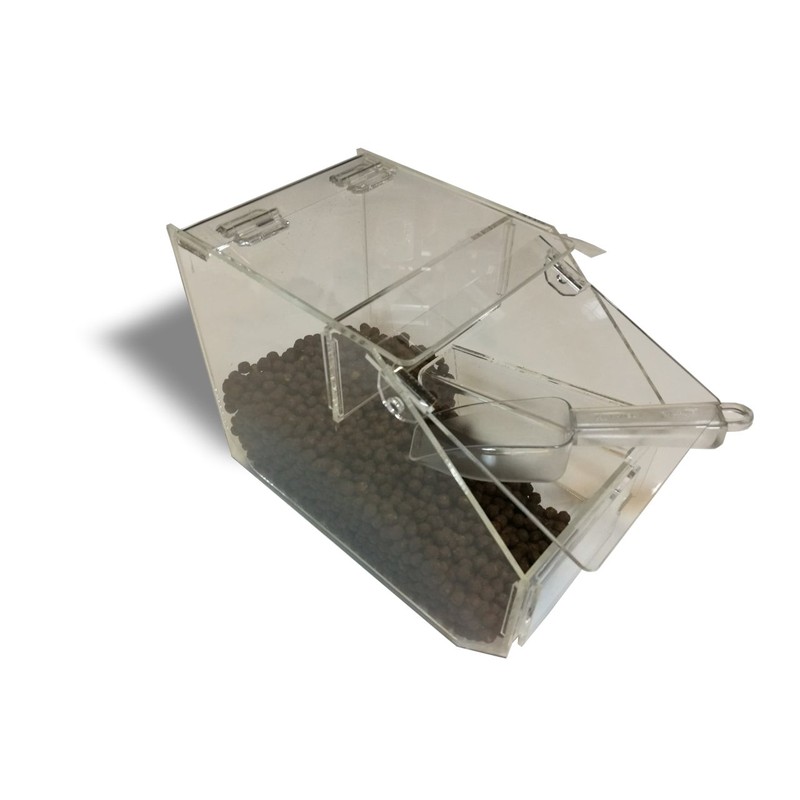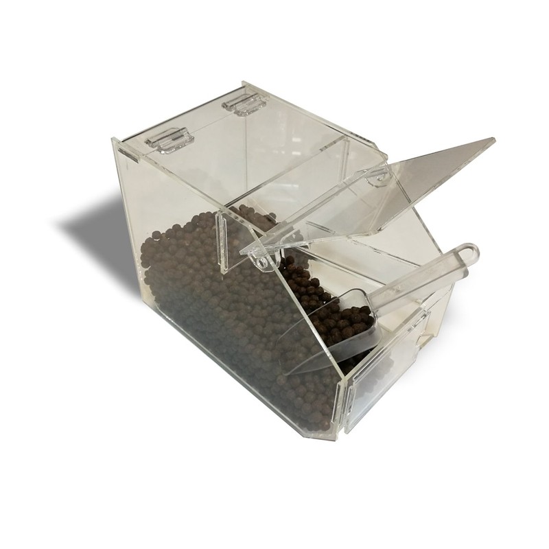 • The candy scoop bin features two easy-open hinged doors. One for the removal and one for the replenishment.
