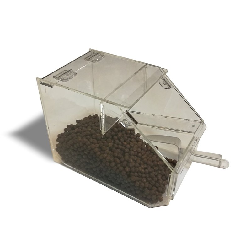 • Customers can access the contents by using the door at the front of the unit which is self closing.The clear acrylic bins makes for checking refills simple.