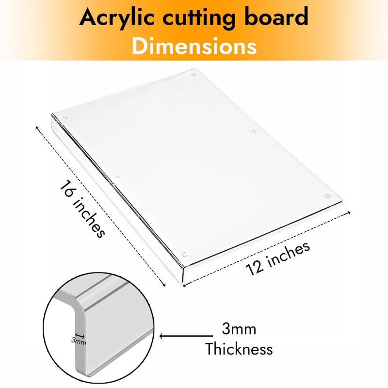 - 𝐏𝐫𝐞𝐦𝐢𝐮𝐦 𝐐𝐮𝐚𝐥𝐢𝐭𝐲: Crafted from high-grade acrylic, our cutting board is engineered for long-lasting durability, providing a reliable surface for all your slicing and dicing needs. Elevate your kitchen with the modern and stylish design of our acrylic cutting board. The crystal-clear surface not only looks sophisticated but also allows for easy monitoring of your cutting precision.
