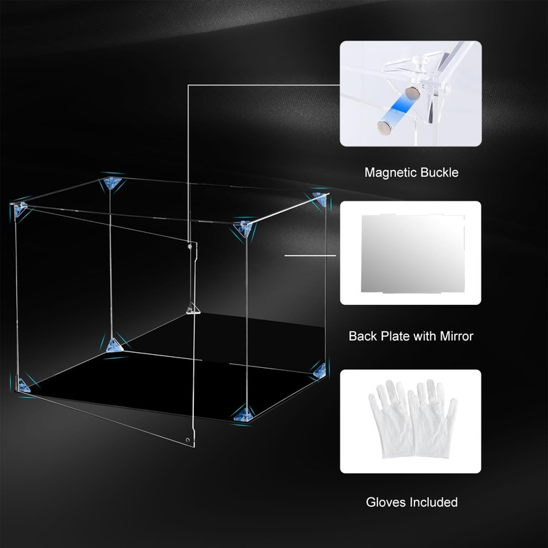 - 【Innovative Design】This acrylic display case uses a creative design with triangular connection for easy assembly without the need of glue. Magnetic door design makes it easy to add new collections. The stable and durable structure allows for easy movement of the display case and your collection.