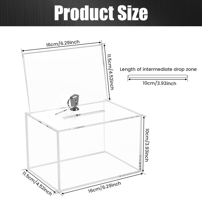 - 【Quality Acrylic Material】 This suggestion box is made of high quality clear acrylic material, which is impact resistant and durable, able to withstand frequent use and movement without damage, light weight and easy to carry and place.