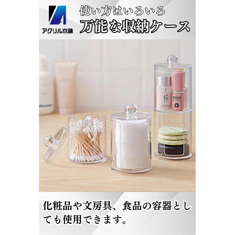 Acrylic Honpo Cotton Swab Case, Cotton Case, Box, Polystyrene, Storage, Small Items, Cotton Swabs, Toothpicks, Toothpicks, Lid Included