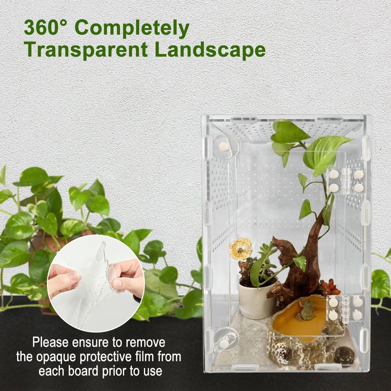 - Acrylic Reptile Terrarium: Our small reptile cage measures 9.8" x 5.9" x 5.9", which is just the right size for baby reptiles or other little critters, giving them plenty of space to move around.