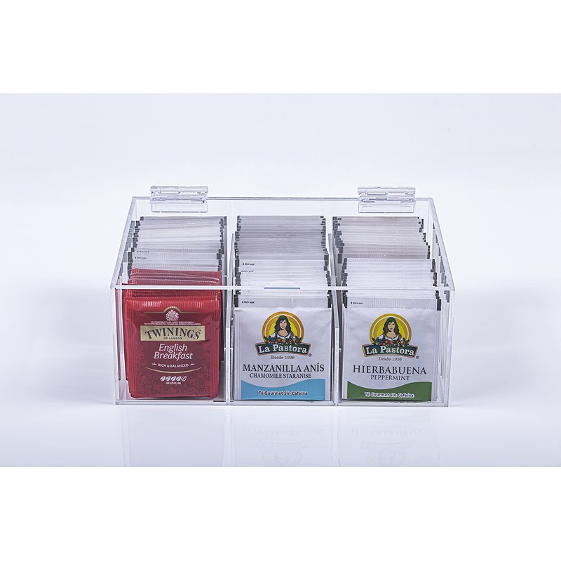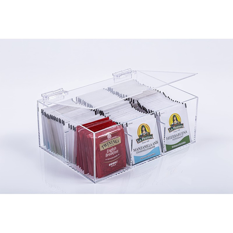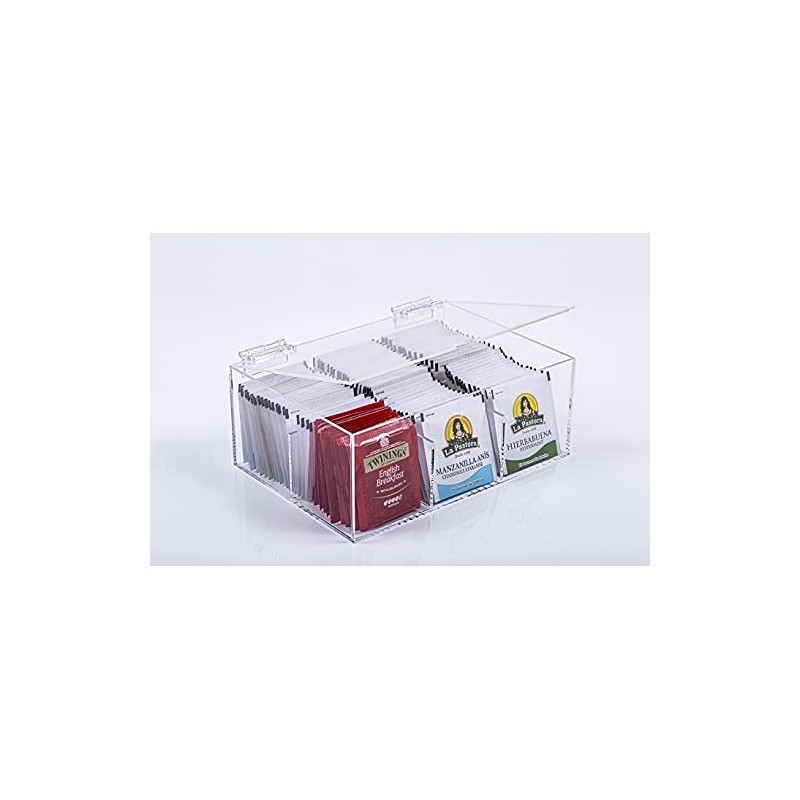 ACRYLIC MADE CAJA PARA SOBRES BOLSAS DE TE 6 COMPARTIMIENTOS TRANSPARENTE ACRILICO 100% TAPA ABATIBLE INFUSIONES