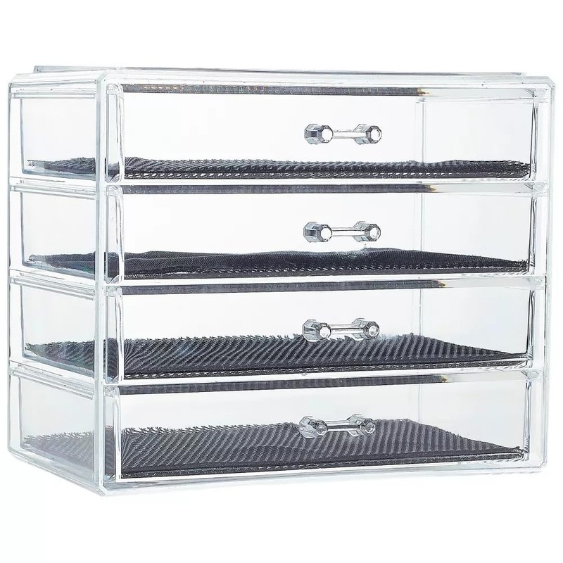 Acrylic Makeup and Jewelry Organizer—4 Drawers, Clear Accessory Organizer with Dustproof Drawers, Durable and Lightweight