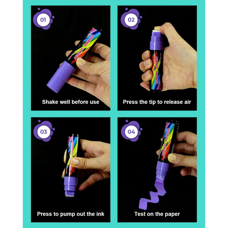 - VIBRANT COLORS & SUPERIOR QUALITY Our 15mm jumbo acrylic paint markers are equipped with exceptionally vibrant colours that stand out on any surface. They are filled with high quality permanent water-based acrylic ink to ensure smooth application and excellent coverage.