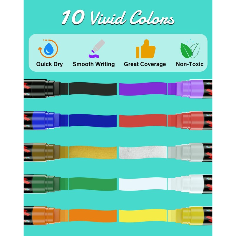 - WATER RESISTANT & FADE RESISTANT: These durable markers are waterproof and fade proof with quick drying ink ideal for outdoor art projects. Whether you are painting rocks for your garden or creating a wall art, you can trust this acrylic marker to stand the test of time.