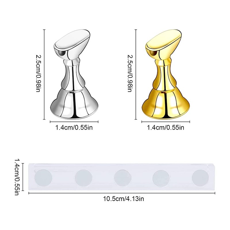 Acrylic Nail Display Stand, Magnetic Nail Tip Holder, 2 Pieces Acrylic Nail Practice Stand, for DIY Manicure Salon (Gold, Silver)