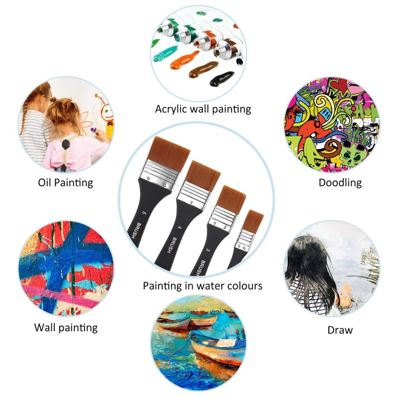 - Practical and versatile: these watercolour brush set are easy to clean and have a wide range of uses. Ideal for drawing, cleaning dust, painting or redecorating the walls. Our flat tip brushes are the solution you've been looking for.