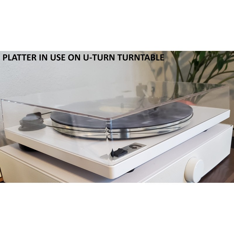 - In response to customer requests, I have increased the thickness of the platter by 3mm to 19mm. The official U-Turn platter is 16mm, but if you don't want to use a mat, this results in a poor VTA alignment. Because some of the benefit of an acrylic platter comes from putting the record directly on the platter, I have increased the height so you won't have a VTA issue when you place the record directly on the platter.