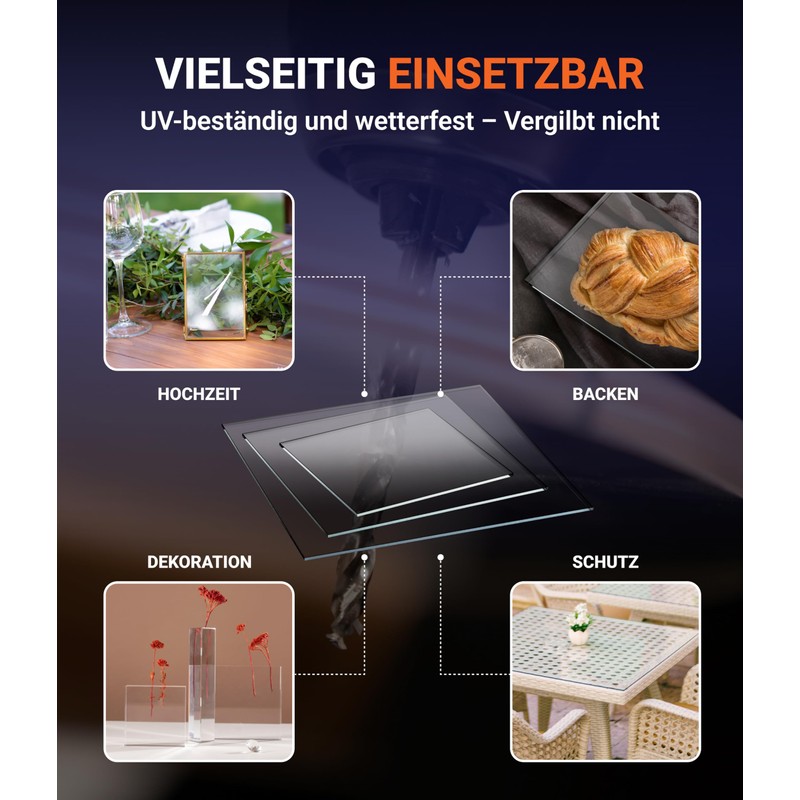 Acrylic Plexi Glass Panels, Perspex Cut, Tested UV Protection, Break-Resistant and Versatile, Various Sizes, transparent