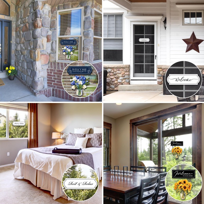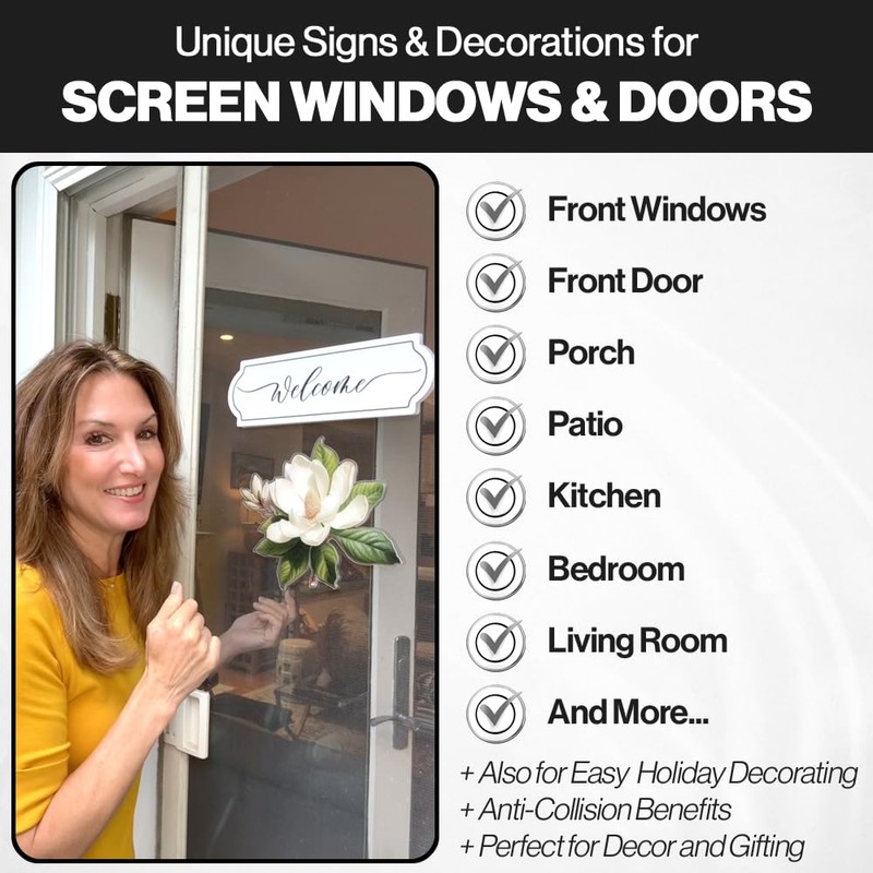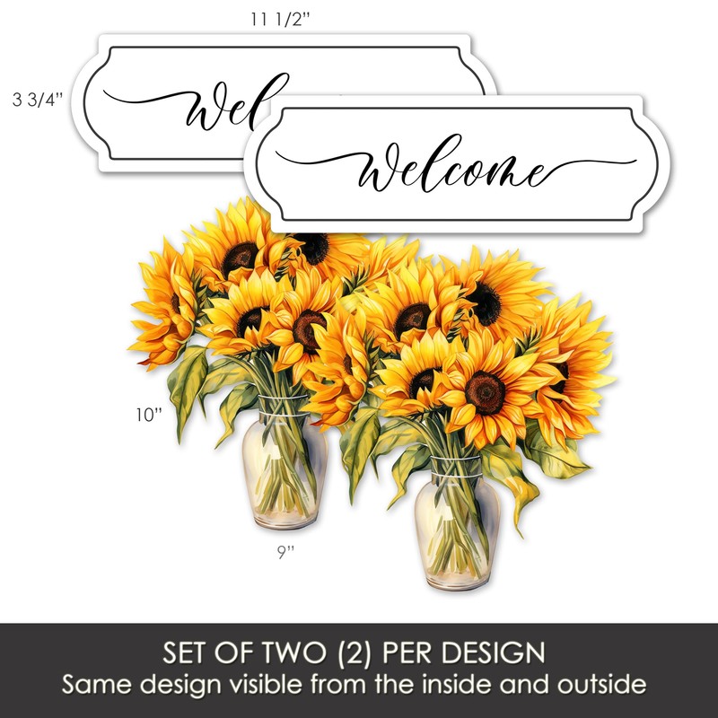 Acrylic Signs & Decorations for Screen Windows & Doors | Anti-Collision Screen Magnets | Set of Four Sunflower and Welcome Sets