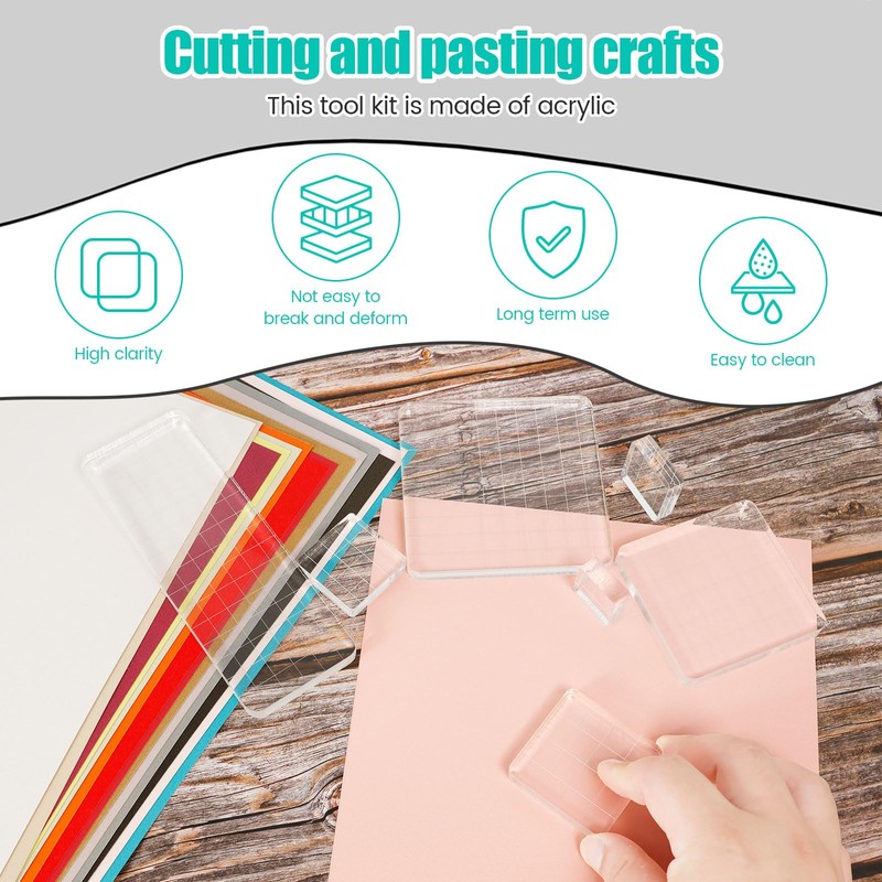 Acrylic Stamp Blocks Set Reusable Stamping Blocks Tools with Grid Lines Versatile Clear Stamp Blocks Easy to Use Stamping Platform Stamping Tools Set for Crafts Ornaments(Style1)