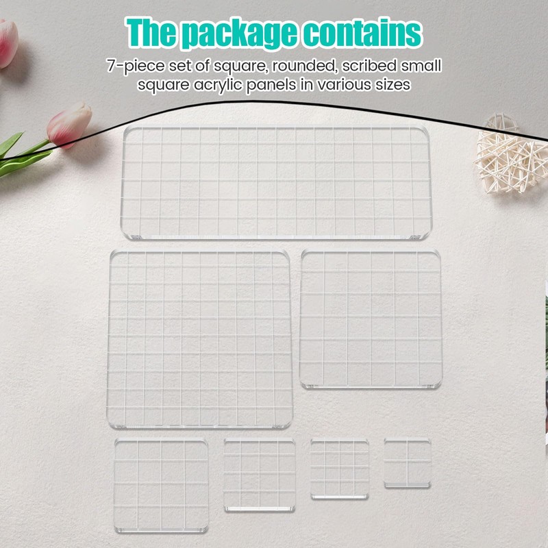 • Packaging Content: The product package has two specifications. 7 sets are different sizes of square rounded corners of the line small grid acrylic plate, 10 sets are including 6 square and 4 special-shaped line small grid acrylic plate