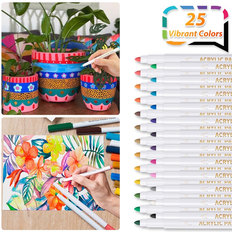 - 🎁【25 Farben Acrylstifte Set】Unser acrylstifte set enthält 25 leuchtende farben und mit gute deckung, es deckt viele arten von Oberflächen gut ab. Schreibt reibungslos, sie geben gleichmäßig ihre farbe ab,schnell trocknend. Sie können direkt nur Acrylstifte verwenden, um holz zum bemalen, die acrylstifte müssen nicht erst durch drücken aktiviert werden. Eine feine Spitze von 1-2 mm kann Ihre Anforderungen zum Zeichnen einer Vielzahl feiner Linien erfüllen und Ihrem Kunstwerk Abwechslung verleihen