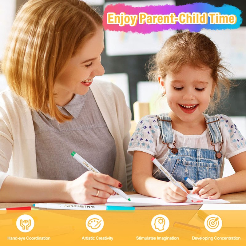 - 🎁【Eltern-Kind-Zeit genießen】Mit diesen Acrylfarbenpinseln sind keine Malfähigkeiten erforderlich, und Sie können Ostereier aus Holz bemalen, schöne Steine bemalen und mit Ihren Kindern zu Ostern basteln. Kinder können nach eigenen Vorstellungen ein einzigartiges Kunstwerk basteln, das die Fantasie und Kreativität der Kinder anregt. (Tipps: Bitte schließen Sie die Stiftkappe sofort, wenn Sie keine Stifte verwenden. Legen Sie den Stift flach hin, damit die Farbe in der Spitze nicht antrocknet)