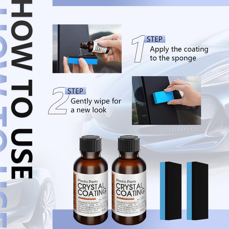 - 【Crystal Coating for Car Plastic Parts】 Our crystal coating for car plastic parts is designed to be gentle and safe, providing optimum care for your plastic parts, trim, and paint. To restore their original beauty, simply apply our car plastic crystal coating refurbish agent to a sponge and gently wipe it onto your car's plastic parts.