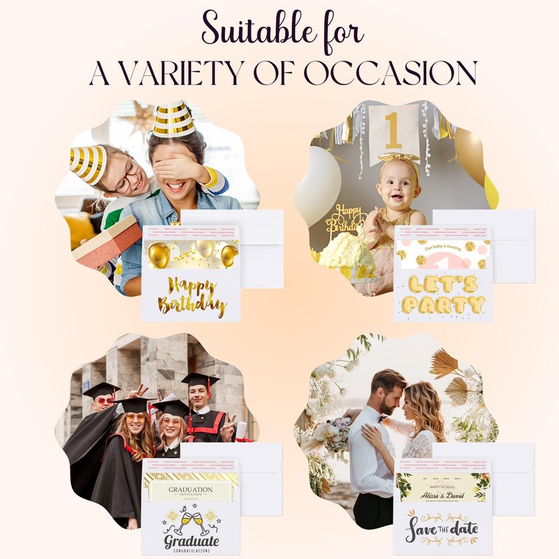 - Versatile for all occasions: Perfect for small business, DIY projects, graduation announcements, wedding invitations, thank you notes, and more.