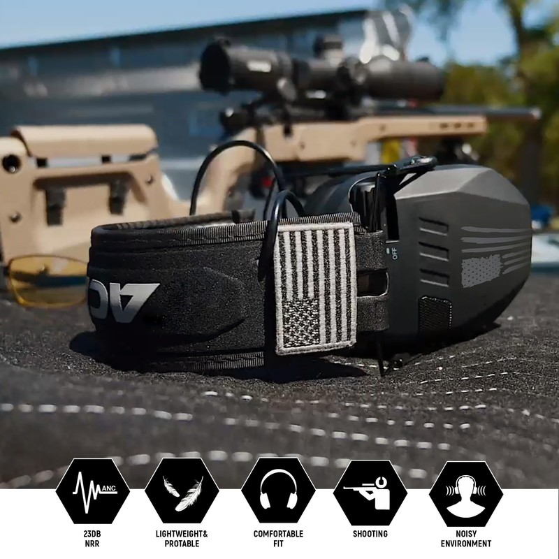 ACT FIRES Active Noise Reduction Earmuffs with Patriotic Flag Design, NRR 23dB Hearing Protection for Gun Range Shooting