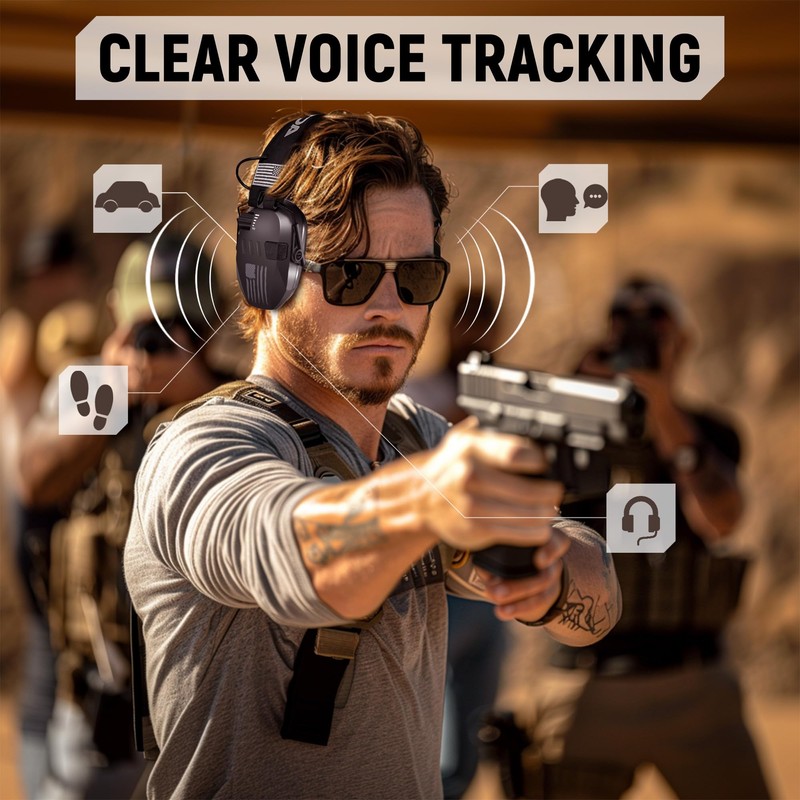 - Noise Reduction Ear Portection Earmuffs: Our ear protection for shooting achieve active noise reduction through chip processing. Use electronic compression noise reduction, noise reduction rating is 23 db, can help you lower noise exposure by 23 db when shooting or at a noise environment. Help you hear regular sound or slight sound while protecting your hearing. And ours can greatly amplify the normal sound while maintaining the same noise cancelling function.