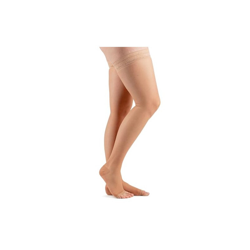Actifi Damen Sheer 15-20 mmHg Kompressionsstrümpfe Oberschenkelhoch Offener Zehenbereich Moderate Unterstützung, nude, Medium