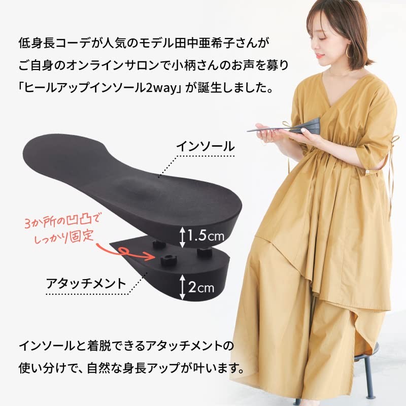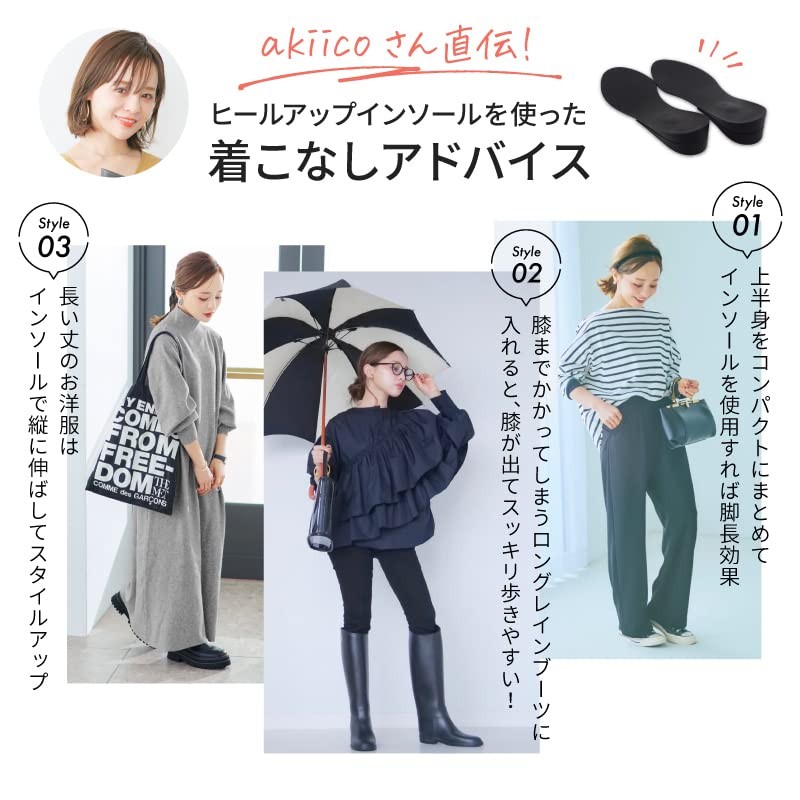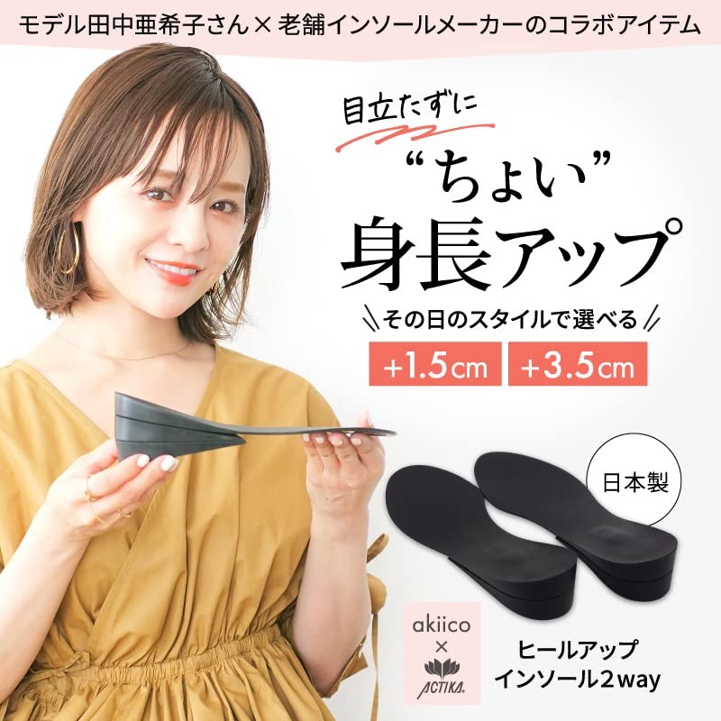 Actika Heel Up Insole, Adjustable Attachment Type, 2 Levels, 0.6 inches (1.5 cm), 1.4 inches (3.5 cm), Adjustable to Fit Shoes, akiico x Actika Women's Black, 8.5 inches (21.5 cm), Black