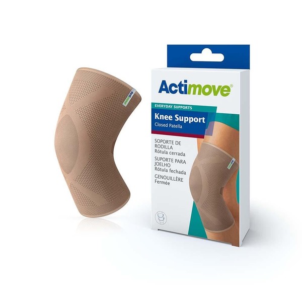 Actimove Everyday Supports Knee Brace, Closed Patella | Compression Sleeve for ACL, MCL Injury Recovery & Maximum Knee Support for Men and Women | Fits Right and Left Side, Beige, Medium