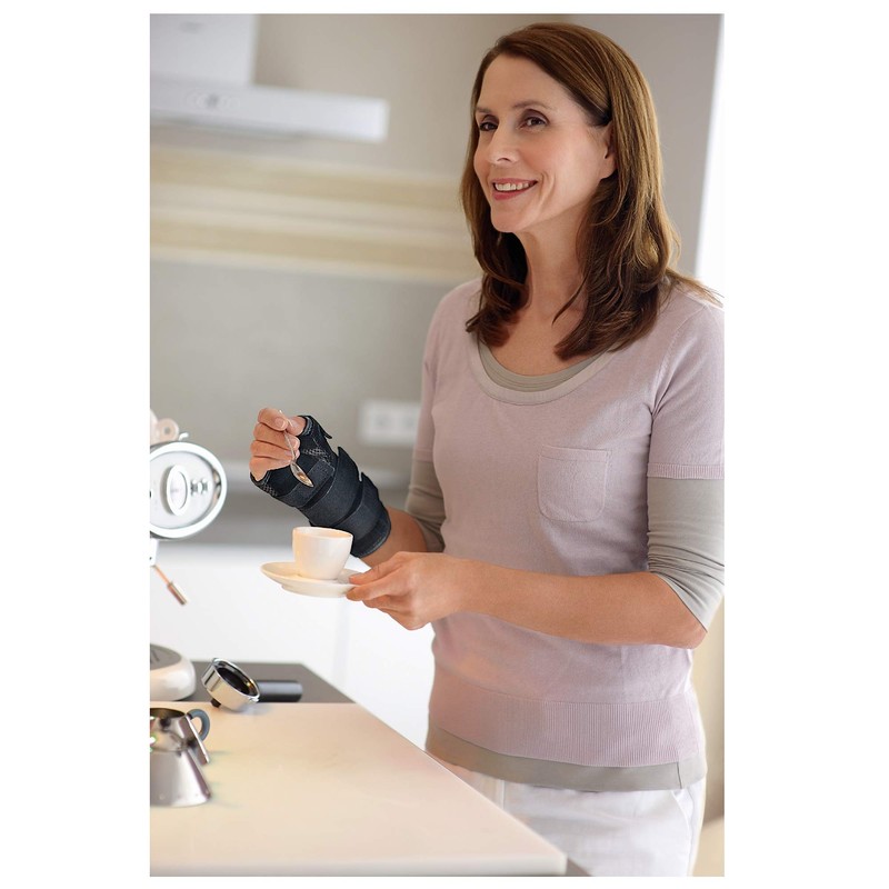 - Suitable for everyday wear, the secure-fit-design allows the fingers to move freely while fixating the wrist. Additional overall stabilization of the wrist through two stays on the back of the hand. Also usable in the late rehabilitation phase, when less stability is needed, by removing the palmar stay.