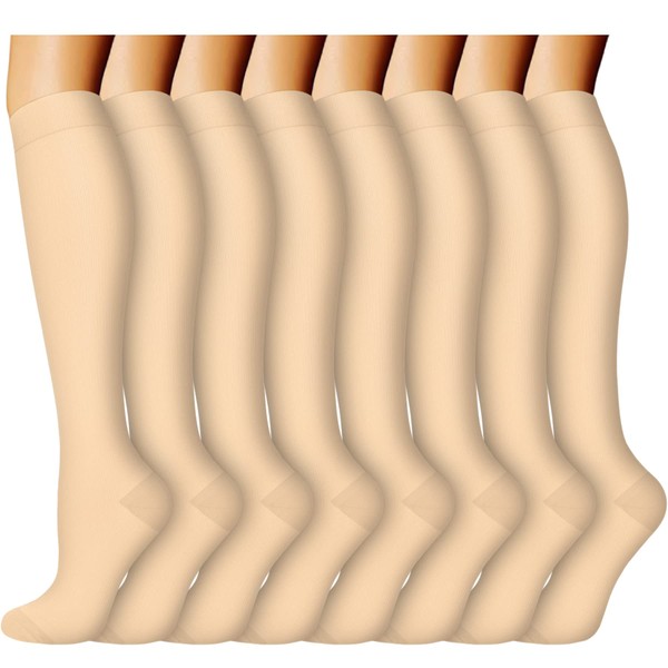 ACTINPUT 8 pares de calcetines de compresión para mujeres y hombres, los mejores calcetines médicos, de viaje y vuelo, correr y fitness (S/M, nude)