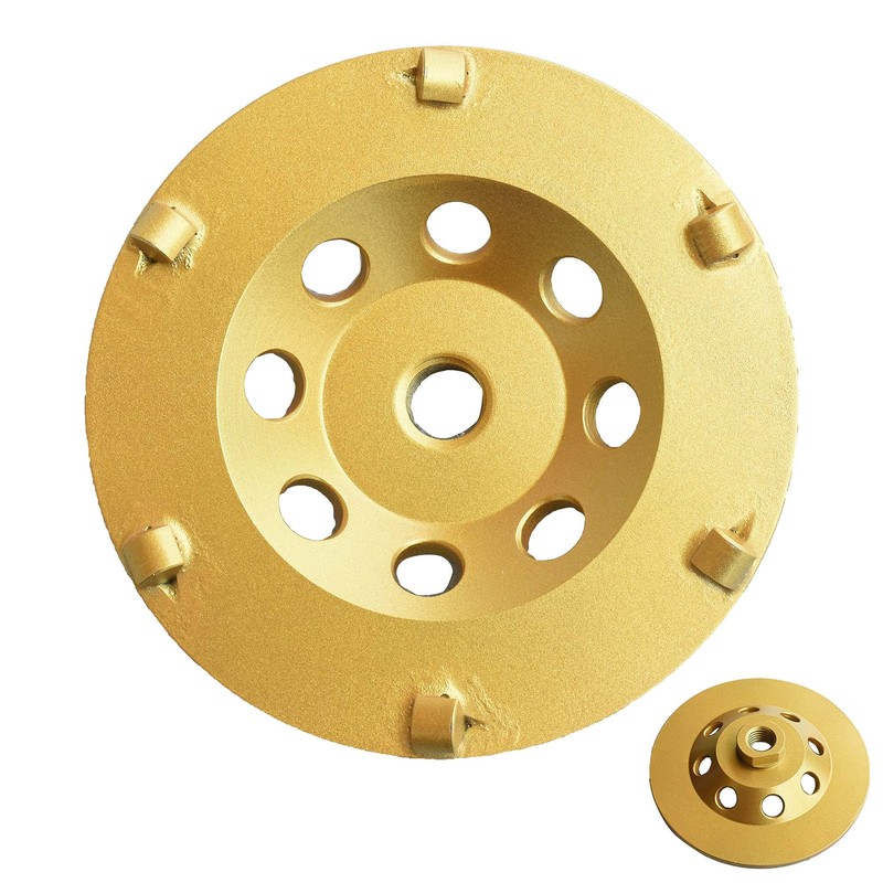 ACTINTOOL 5 in. x 5/8-11 in. Threaded 6 PCS 1/4 Round Epoxy Removal PCD 5" PCD Cup Wheel, Concrete Coating Thinset Mortar Removing PCD Grinding Wheel (5/8"-11 Threaded)