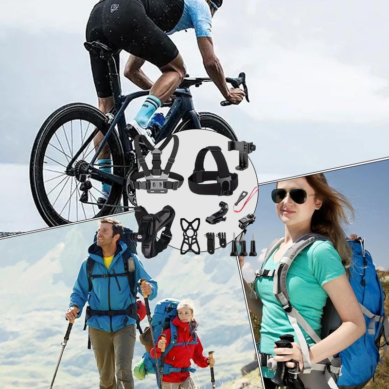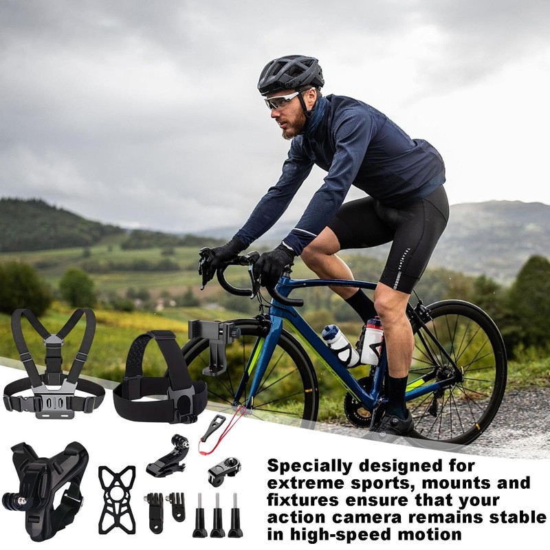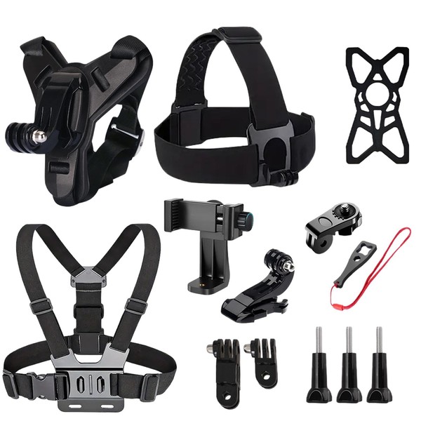 - Accessories Galore: With 13 specially-designed accessories such as cycling chinstrap, chest strap, headband, and cell phone clip, this sports camera accessory set has everything you need for versatile use in various scenarios like riding, hiking, or note-taking