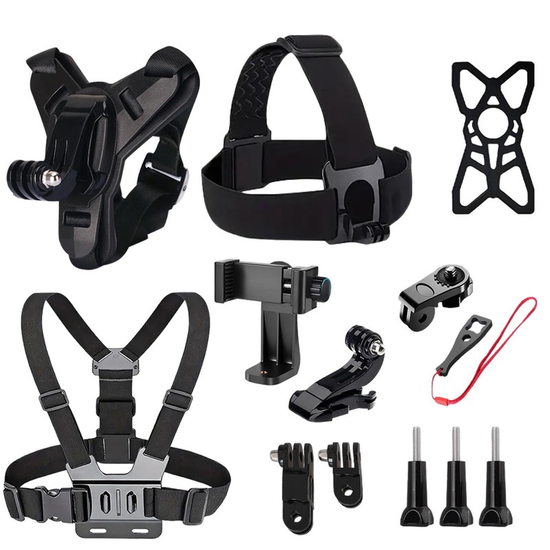 Action Camera Accessories Kit, Cam Accessories Chin Brace Chest Strap Phone Clip, Action Camera Bracket Kit Professional for Riding Daily Life