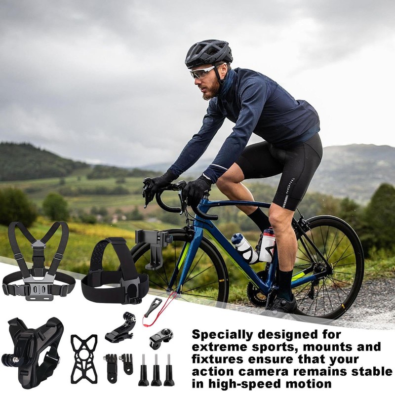 - All-Around Solution: Including cycling chinstrap, chest strap, headband, and even cell phone clip, this sports camera accessory kit features 13 cleverly-designed add-ons to cater to your needs while riding, hiking, or jotting notes