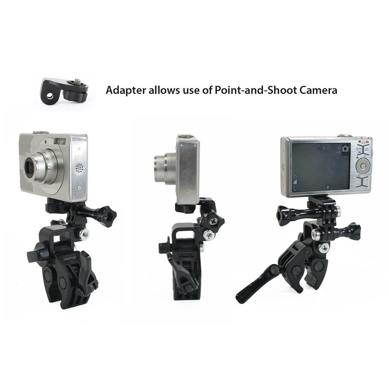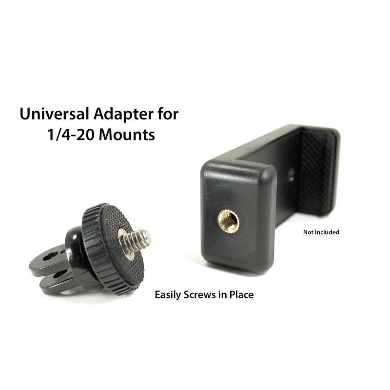 - SPORT CAM or PHONE HOLDER - Compatible with GoPro similar accessories. Features tripod screw to connect Sport Cameras onto any standard Style Mount, handheld stick, tripod adapter, etc.